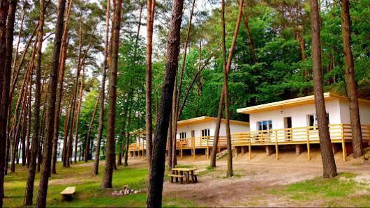 Ośrodek znajduje się przy samej plaży i praktycznie w lesie. Jest więc sporo miejsca dla lubiących słoneczko i opalanie jak i pragnących odpocząć w cieniu. Spory teren więc każdy ma trochę prywatności i nikt nikomu w okna nie zagląda. Dużo atrakcji dla dzieci. Mini zoo, które chodzi po terenie ośrodka robi niesamowity klimat. Plac zabaw, ping pong, szachy, bilard, i różne inne atrakcje. Każdy znajdzie coś dla siebie. Domki z zewnątrz wyglądają na PRL. Wewnątrz miłe zaskoczenie. Wyremontowane i zadbane wnętrze. Czysto, zero pleśni, miły zapach. Podstawowe wyposażenie na miejscu. Grill przy każdym domku, kilka miejsc na ognisko.